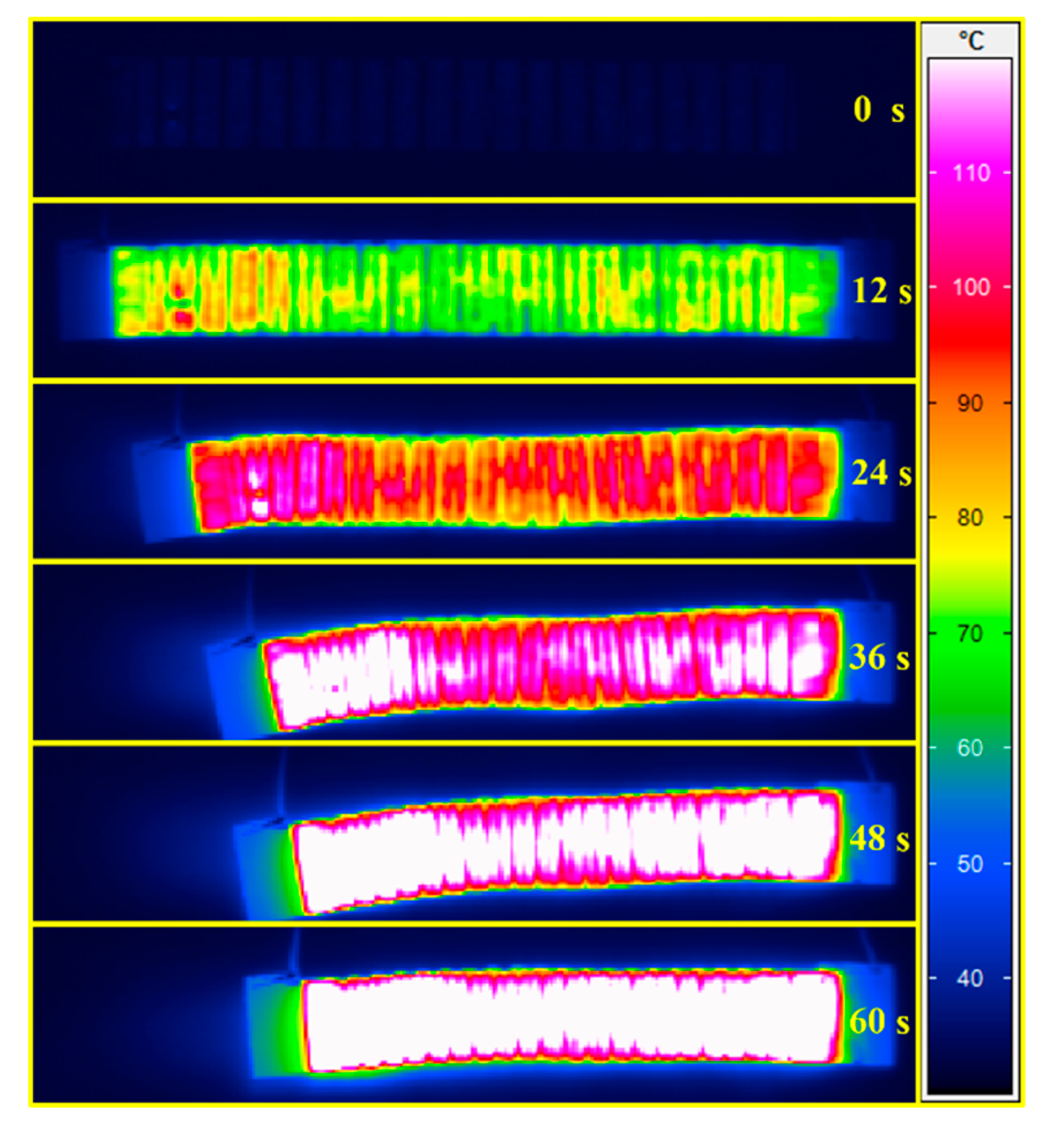 | DC Voltage (V) | Heat Flux Density (W/m2) | Equilibrium Temperature (°C) | Heat Time (s) |