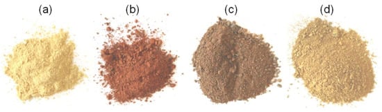 Photos of powders of (a) 4EP-pPDA, (b) 5 mM Ce(NO3)3·6H2O, (c) 5 mM CeCl3·7H2O, and (d) 5 mM Ce(OOCCH3)3·5H2O.