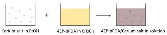 Thereafter, the cerium salts were incorporated within the 4EP-pPDA precursors via a solvent mixture of dichloromethane/ethanol (90/10 v/v) as shown in Scheme 2.
