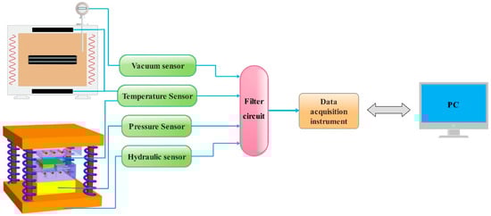 Therefore, in the preparation process, key process parameters such as temperature, time, material, pressure, and vacuum degree need to be collected and controlled in real time, so as to ensure that the composite material is prepared and formed under reasonable process parameters. Based on the above analysis, our research team designed a data acquisition control module, and its acquisition control principle is shown in Figure 5.