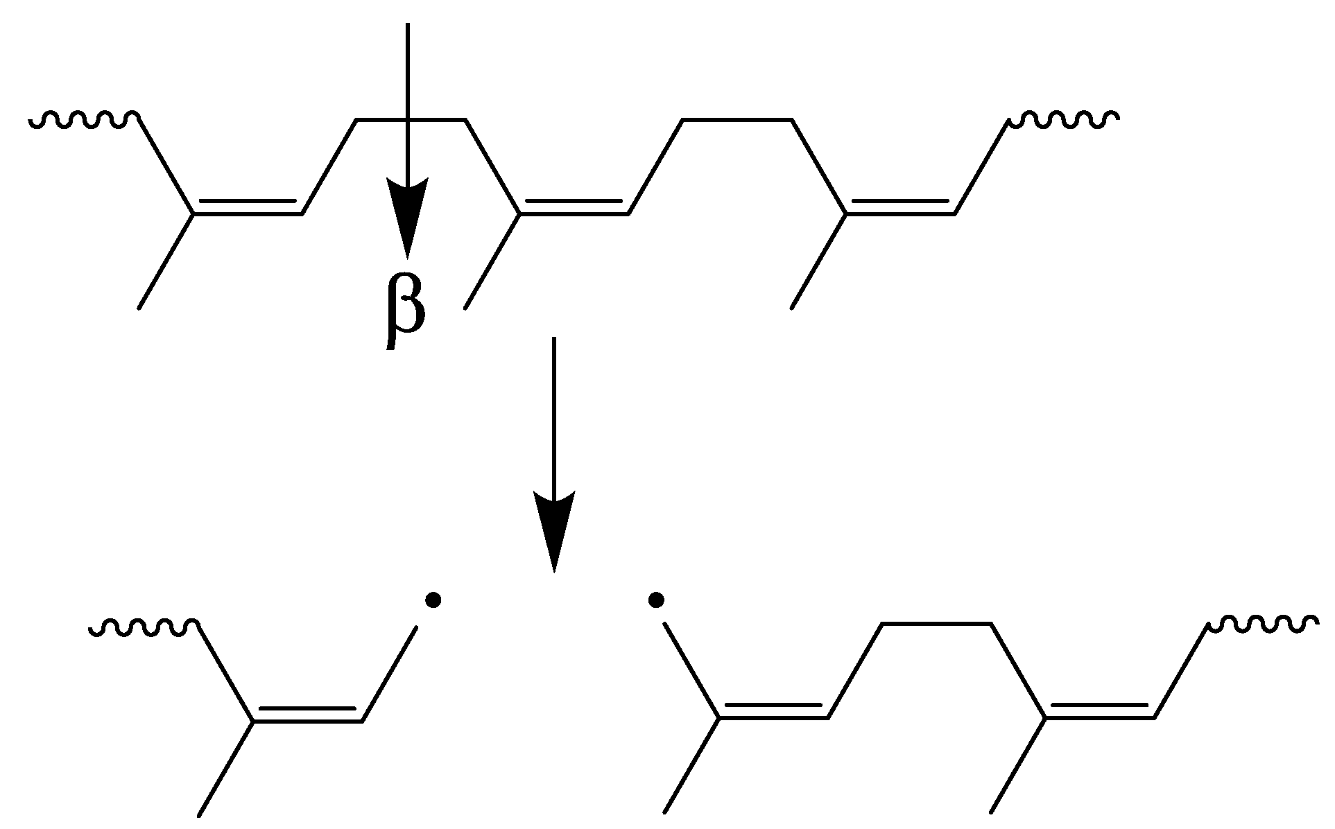 - Bolland, J.L.; Orr, W.J.C. Thermal breakdown of rubber. Rubber Chem. Technol. 1946, 19, 277–282. [Google Scholar] [CrossRef]