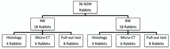 - Grana, W.A.; Egle, D.M.; Mahnken, R.; Goodhart, C.W. An analysis of autograft fixation after anterior cruciate ligament reconstruction in a rabbit model. Am. J. Sports Med. 1994, 22, 344–351. [Google Scholar] [CrossRef] [PubMed]