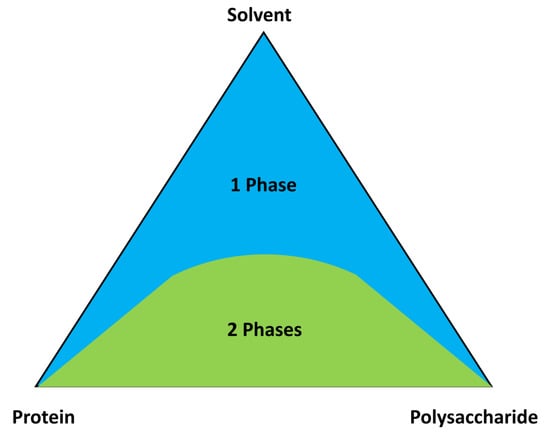 Ternary-phase diagram of a protein/polysaccharide solvent system.