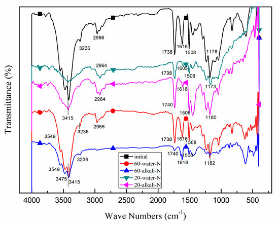 | Characteristic | Initial | 60 °C Water-N | 60 °C Water-C | 60 °C Alkaline-N | 60 °C Alkaline-C |