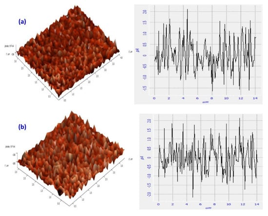 STM has a high resolution of 1 Å in the sample plane and as high as 0.1 Å in the vertical plane, and is capable of imaging at ambient pressures and in liquids with minimum specimen damage. Despite these advantages, the use of STM in the analysis of the biopolymer field is limited by poor conductivity, instability, flexible elasticity of biopolymers. However, these drawbacks have been overcome by imaging carbon cast replicas [232], STM related AFM [233], and by conductive coating [234,235]. The use of STM in the biopolymeric field is very limited and has been used in the analysis of the molecular structure of bacterial polysaccharides like gellan gum and xanthan gum, deposited on highly oriented pyrolytic graphite (HOPG). The STM images of xanthan gum deposited from a high concentration aqueous solution onto HOPG revealed stiff aligned rod-like molecules [84]. In the case of gellan gum, the double-helical structure forming into cation-mediated aggregates was observed in the STM images [85], suggesting that STM has the ability to analyze intricate details related to the molecular structure of biopolymers. STM has been further used in the studies of cellulose crystalline fibrils [86], surface modification of methylcellulose [87], biocomposites [236], collagen [237], and other polysaccharides [238]. Abdullah et al. studied the surface modification of methylcellulose/cobalt nitrate polymer electrolytes by H2S, and the STM analysis of samples revealed an increase in surface roughness of the samples post H2S treatment (Figure 17) [87]; maximum height and root mean square deviation of the roughness profile were increased to 4.296 and 0.752 pA from 3.734 and 0.705 pA, respectively. This increase in surface roughness was attributed to the formation of CoS nanoparticles, which were dispersed homogenously throughout the film as indicated by the relatively low value of root mean square of the gas treated samples.