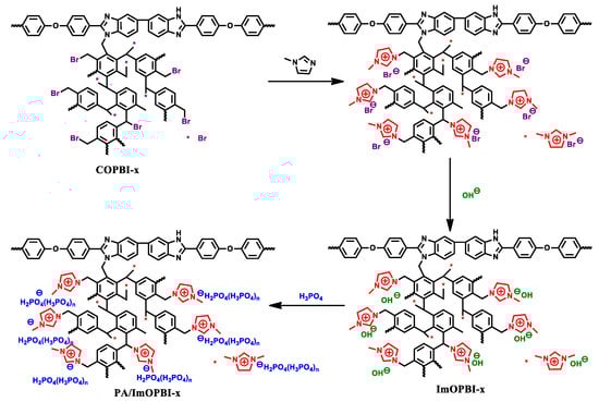 2.1. Preparation of COPBI-x, ImOPBI-x, and OPBI Membranes
