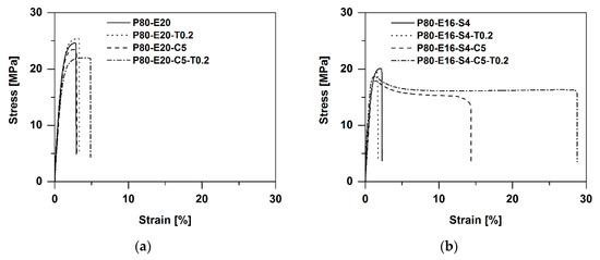 Tensile tests of the corresponding samples. (a) Samples without SBO and (b) samples with SBO.