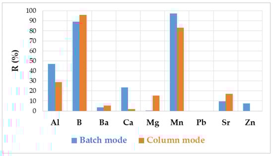 Boron and manganese compounds can have hazardous effects on plants, animals, and human beings when the supply of these elements is excessive. Therefore, their concentrations are limited in food and water. The recommended limit is set at 2.4 mg/dm3 for boron and at 0.4 mg/dm3 for manganese in drinking water (World Health Organization guidelines from 2011 and 2008, respectively). Boron is essential to plant growth, but may be toxic to crops when present in excessive concentrations in irrigation water. Sensitive plants show damage when irrigation water contains more than 670 μg/dm3, and even tolerant plants may be damaged when the concentration of boron exceeds 2000 μg/dm3. The recommended water quality criteria for long-term irrigation indicate 0.75 mg/dm3 for boron and 0.20 mg/dm3 for manganese, respectively []. In Poland, the limit of boron concentration equals 1 mg/dm3, while the limit of manganese concentration is 0.5 mg/dm3, both in natural water and in wastewaters discarded to the environment (Regulation of the Minister for Maritime Economy and Inland Navigation, 2019).