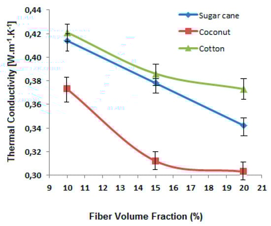 Effect of fiber type and fiber content on thermal conductivity of the sugarcane, coconut and cotton fiber-reinforced composites.