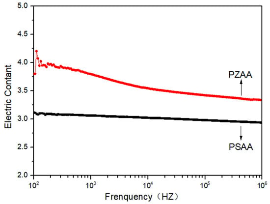 Frequency dependences of the dielectric constant of PSAA and PZAA.