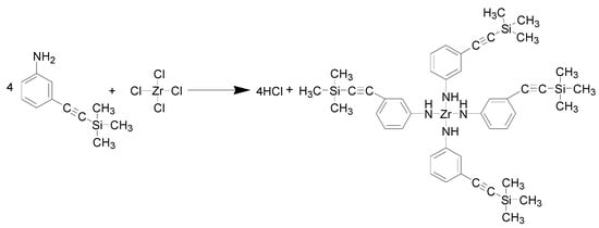 The solution of hydrogen chloride in ethyl acetate (1 mol/L) was obtained from Changtai Pharmaceutical Co. Ltd (Zhenjiang, China). The anhydrous ether (AR, purity 99.7%), ammonium chloride (AR, purity 99.5%) and tetrahydrofuran (AR, purity 99.0%) were purchased from Sinopharm Chemical Reagent Co. Ltd (Shanghai, China). The zirconium tetrachloride (AR, 99.9%), m-amino arylacetylene (purity 99.0%) and trimethylchlorosilane (GC, purity 99.0%) were provided by Aladdin Industrial Co. Ltd (Shanghai, China). All of the chemicals were used as received without further purification.