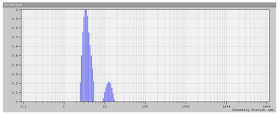 The distribution of light scattering intensity I on hydrodynamic radii Rh-i of scattering species of CL-PiPrOx in 2-NP at concentration c = 0.0436 g·mL−3.