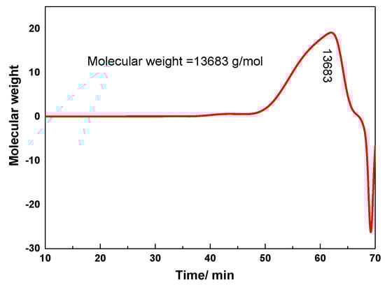 FT-IR spectra were collected using a WQF-520 Fourier Transform Infrared (FT-IR) spectrometer (Beijing Jingke Ruida Technology Co., Ltd., Beijing, China). The IR source, KBr beam splitter and DTGS detector were used to gather mid-IR measurements (4000–400 cm−1). The MIR transmission spectra were collected using the KBr pellet technique (1 mg of a sample homogenized with 200 mg KBr). GPC was utilized to measure the molecular weight using an Alliance e2695 instrument (Waters, MA, USA), the injection volume and operation hours were 50 mL; the testing temperature was 30 °C, flow rate was 1.0 mL /min, standard was polystyrene and solven was tetrahydrofuran. TGA-DSC tests were performed on a simultaneous TGA-DSC (METTLER TOLEDO, Zurich, Switzerland) instrument under nitrogen atmosphere flow (20 mL min−1) with a heating rate of 20 °C min−1 from 30 to 600 °C.