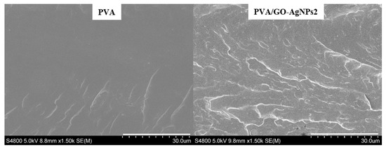 SEM images of the fracture surfaces of neat PVA and PVA/GO–AgNPs2 nanocomposite.