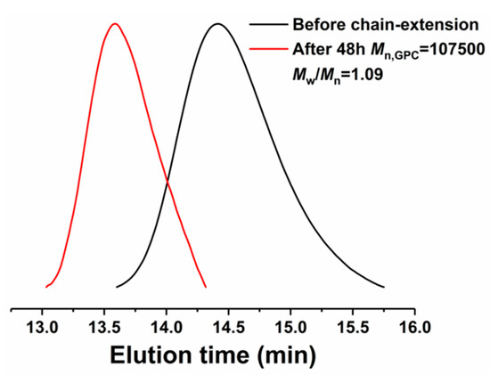 Gel permeation chromatography (GPC) traces of polymers obtained from chain-extension experiment.