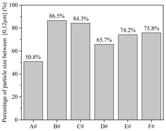 Figure 4 shows the percentage of HIPS particle size between 0 to12 μm for six sets of screws. It can be seen that screws A and B have the smallest and largest percentages of small-size HIPS particles, respectively, among the six screws. The percentage of small-size HIPS particles in screw A is only 50%, which is much less than that of screws B, C and F (higher than 75%). The results further indicated that the conventional screw A shows the worst dispersive mixing compared to the torsional screws.