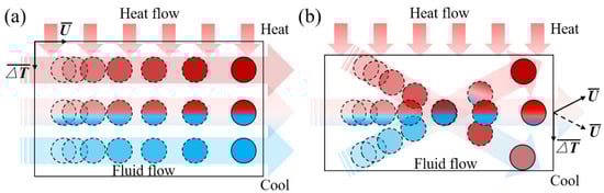 Synergy model between velocity and thermal flow fields in STD and TOE working channel: (a) STD channel; (b) TOE channel.