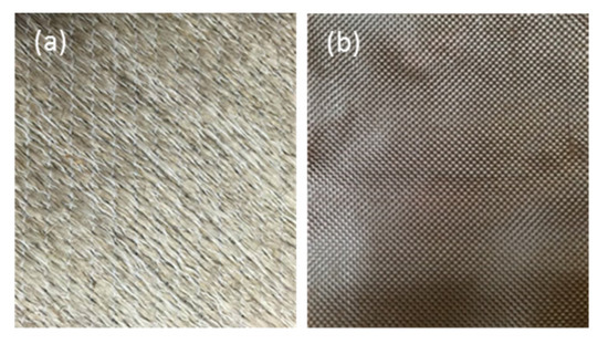 Reinforcements used, (a) flax woven fabric, and (b) basalt woven fabric.