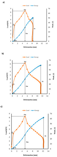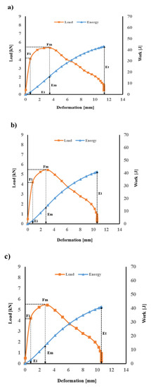 Load–deformation–energy traces obtained from the impact testing for flax/VE composites are shown in Figure 5.