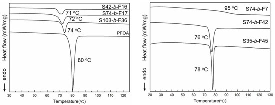 - Hirao, A.; Koide, G.; Sugiyama, K. Synthesis of Novel Well-Defined Chain-End- and In-Chain-Functionalized Polystyrenes with One, Two, Three, and Four Perfluorooctyl Groups and Their Surface Characterization. Macromolecules 2002, 35, 7642–7651. [Google Scholar] [CrossRef]