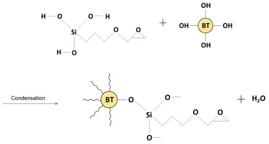 - Iijima, M.; Sato, N.; Lenggoro, I.W.; Kamiya, H. Surface modification of BaTiO3 particles by silane coupling agents in different solvents and their effect on dielectric properties of BaTiO3/epoxy composites. Colloids Surf. A 2009, 352, 88–93. [Google Scholar] [CrossRef]