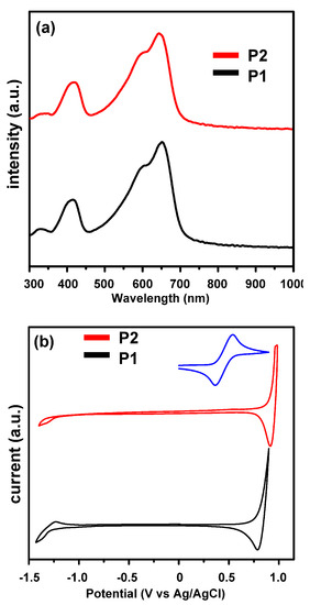 Summary of the Photophysical, Electrochemical, and Thermal Properties of P1 and P2.