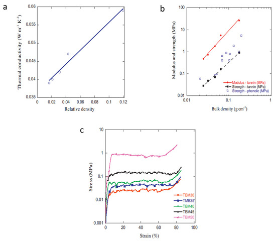 (a): Thermal conductivity, (b) compressive modulus, and (c) stress–strain curves [80].