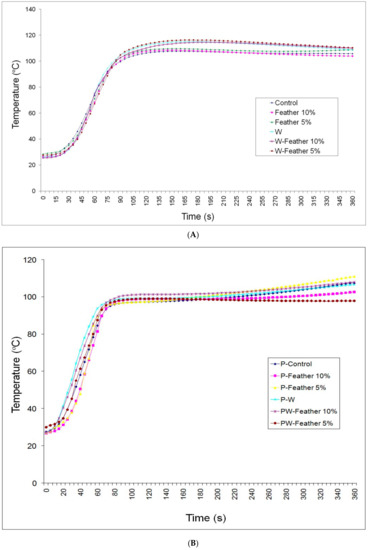 3.1. Temperature of the Core of Composite Mats