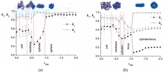 - Vasilevskaya, V.V.; Klochkov, A.A.; Lazutin, A.A.; Khalatur, P.G.; Khokhlov, A.R. HA (Hydrophobic/Amphiphilic) Copolymer Model: Coil−Globule Transition versus Aggregation. Macromolecules 2004, 37, 5444–5460. [Google Scholar] [CrossRef]
