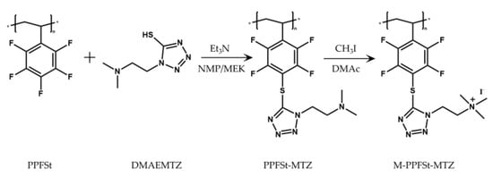 2.4. Quaternization of PPFSt-MTZ (M-PPFSt-MTZ)