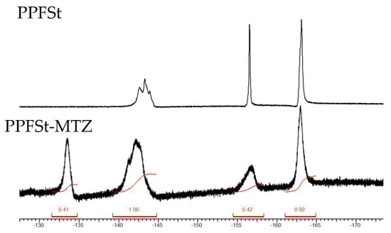 The 19F-NMR spectra of poly(pentafluorostyrene) (PPFSt) and PPFSt-MTZ.