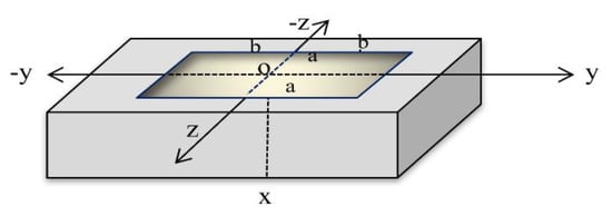 The rectangular thermal pulse of the laser pulse acts on a bandwidth of centered on the y-axis and bandwidth of centered around the z-axis on the surface of the half-space , and is zero elsewhere, as in Figure 1. Hence, we get
