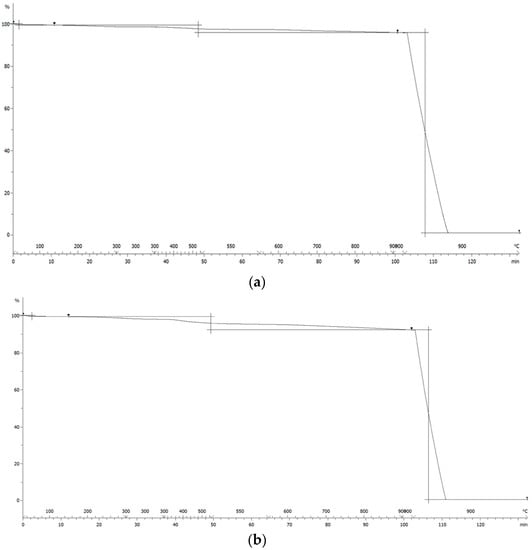 The TGA instrument used to perform thermogravimetric analyses was a Mettler TGA SDTA/851 (Mettler Toledo, Columbus, OH, USA). The standard method ISO9924-1 was followed. The method used for the analysis of adducts (5–10 mg) consists in a heating ramp (10 °C/min) from 30 up to 300 °C, followed by a 10 min isotherm at 300 °C, then another heating ramp (20 °C/min) up to 550 °C and another isotherm at 550 °C (15 min); this isotherm is followed by a final heating ramp (10 °C/min) up to 900 °C after which the temperature is kept constant until the end of the experiment. At 102.5 min from the beginning of the test, the gas in the chamber is switched from N2 to air. The whole experiment lasts 120 min.