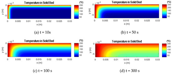 The heat flow determined in Equation (32) of the Model of Pape [3] is used to calculate the disperse melting in this work. This heat flow leads to the formation of a temperature profile within the solid particle. This phenomenon can be regarded as a transient heat conduction problem. Thus, the following differential equation describes the temperature profile: