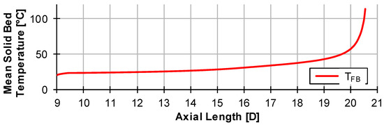 However, if one now considers the enthalpy input, the difference becomes clear. By adding 100 J/1g to the specific enthalpy hi−1 at 124 °C, a specific enthalpy hi of 386.57 J/g at interval i is reached (see Figure 6b). This results in a temperature of only 145.7°C instead of the temperature of 151.7 °C calculated purely by heat capacity. Thus, the temperature change in the particle must be corrected in each case over the enthalpy calculation.
