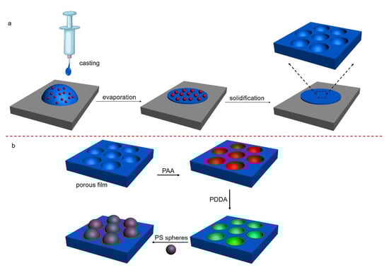 - Wan, L.S.; Lv, J.; Ke, B.B.; Xu, Z.H. Facilitated and Site-Specifific Assembly of Functional Polystyrene Microspheres on Patterned Porous Films. ACS Appl. Mater. Interfaces 2010, 2, 3759–3765. [Google Scholar] [CrossRef]