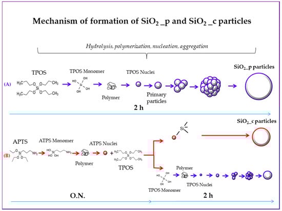 Formation mechanism of (A) SiO2_p and (B) SiO2_c NPs.