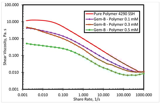 Shear viscosity of 4290 SSH polymer with Gem-B surfactant at different concentrations.