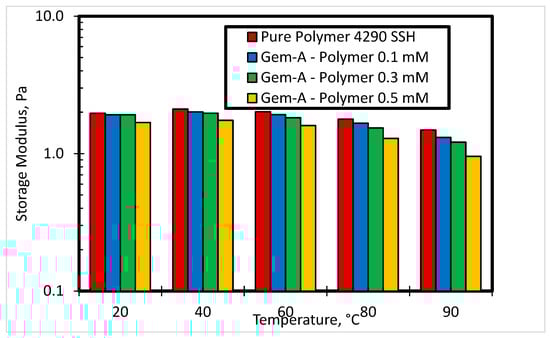 The storage modulus of 4290 SSH polymer with Gem-A surfactant at different concentrations.