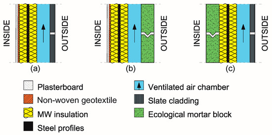 - In any case, the three façades showed very similar energy behaviours over one year, which validated the recycled mortar blocks that were used to replace both slate as an exterior cladding, and the gypsum and cardboard panelling and non-woven geo-textiles as interior layers.