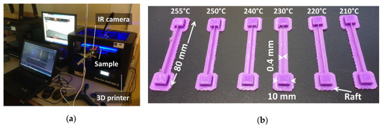 Infra-red measurements: (a) Setup; (b) produced samples for all printing temperatures.