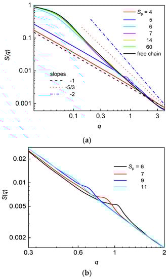 - Hsu, H.-P.; Paul, W.; Binder, K. Scattering function of semiflexible polymer chains under good solvent conditions. J. Chem. Phys. 2012, 137, 174902. [Google Scholar] [CrossRef] [PubMed]