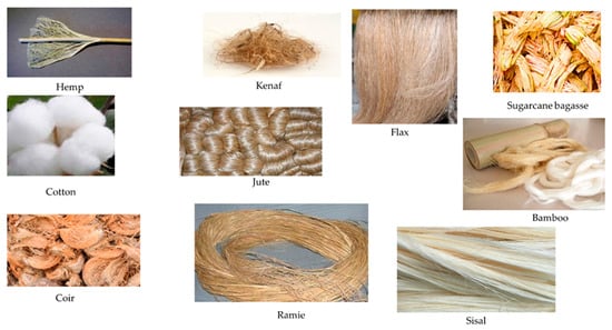 The combination of organic natural fibers (Figure 1) and inorganic or organic polymers and nanoparticles has a high potential for improving mechanical performances, and thus expanding the areas of application. Recently, various inorganic nanoparticles were studied for incorporating them with biofibers in the matrix to form NBCs especially for their biodegradability. This results in the development of an interfacial bond between the biofibers and polymers in a composite system, whereas the organic phase helps to form an inorganic matrix [,,,].