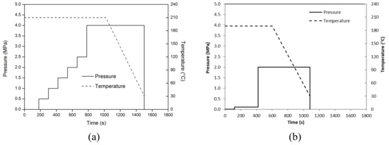 Hot-pressing conditions for (a) composite and reference (b) plates.