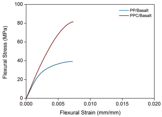 In light of the foregoing consideration, the significant improvement of the flexural parameters such as modulus and strength detected for the specimens containing the coupling agent is reasonable. In particular, the flexural strength of PPC/Basalt specimens was about twice the value estimated for composites based on neat PP.
