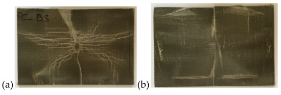 In this way, 380 mm × 380 mm plaques constituted by 16 plies, symmetrically settled with respect to the medium plane, with an average thickness of 2.6 mm and a volumetric content of reinforcement of about 50% (ASTM D 3171-04, Test Method II) have been produced.