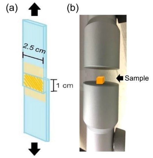 Schematically representation of the mechanical property test (a) shear strength test, and (b) compression test used in this study.