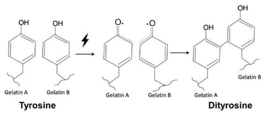 - Partlow, B.P.; Applegate, M.B.; Omenetto, F.G.; Kaplan, D. Dityrosine Cross-Linking in Designing Biomaterials. ACS Biomater. Sci. Eng. 2016, 2, 2108–2121. [Google Scholar] [CrossRef]