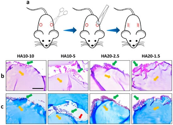- Yan, X.M.; Seo, M.S.; Hwang, E.J.; Cho, I.H.; Hahn, S.K.; Sohn, U.D. Improved synthesis of hyaluronic acid hydrogel and its effect on tissue augmentation. J. Biomater. Appl. 2012, 27, 179–186. [Google Scholar] [CrossRef]