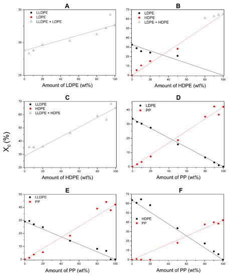 - Li, J.; Shanks, R.A.; Long, Y. Miscibility and crystallisation of polypropylene-linear low density polyethylene blends. Polymer 2001, 42, 1941–1951. [Google Scholar] [CrossRef]